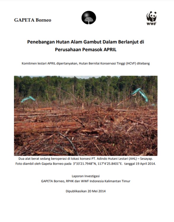 GAPETA Borneo, Relawan Pemantau Hutan Kalimantan (RPHK) dan WWF-Indonesia merilis laporan yang mengungkapkan bahwa PT. AHL masih menebangi hutan alam gambut yang dilindungi setelah APRIL mengumumkan Kebijakan Rencana Pengelolaan Hutan Lestarinya pada Januari 2014 yang lalu. PT. AHL bahkan telah menebangi Hutan Bernilai Konservasi Tinggi (HCVF) yang dinilai oleh lembaga independen yang ditunjuk APRIL.